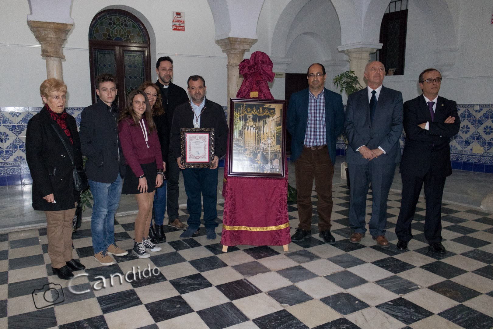En la tarde de ayer 13 de marzo, y en el incomparable marco de los claustros de San Francisco, tuvo lugar la presentación y descubrimiento del que será nuestro cartel anunciador de la Semana Santa de Villamartín para este año de 2017. El acto que estuvo presidido por el párroco de Santa María de las Virtudes Don Francisco J. Varela y el Alcalde de Villamartín Don Juan Luis Morales, fue presentado por el Presidente del Consejo Local de Hermandades y Cofradías Jesús Chacón Holgado que estuvo acompañado por el Hermano Mayor de la Hermandad de Nuestro Padre Jesús Nazareno y Nuestra de los Dolores José Gómez Vidal, hermandad que ha sido motivo para el cartel de este año.
