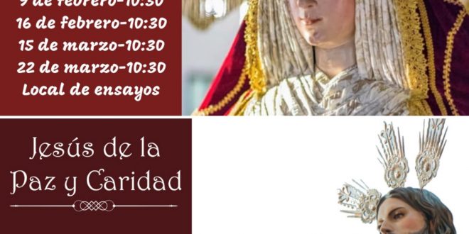 Por su parte Federico Chacón Jarava, Capataz del palio de Nuestra Señora de los Reyes, convoca a sus hombres al primer ensayo, que se realizará Dios mediante, el domingo 9 de febrero en el local del ensayo, sito en la calle San Quintín de Villamartín. Federico nos comunica que puede asistir todo aquel costalero que quiera incorporarse a la cuadrilla de la Virgen del domingo de Ramos de Vilamartín.