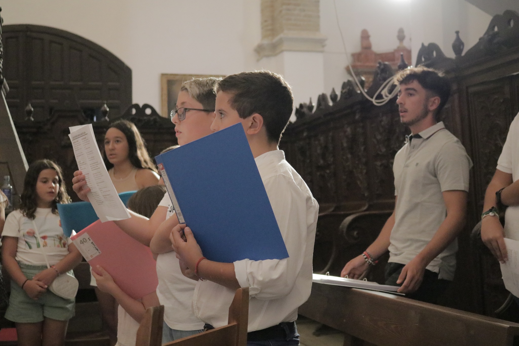 La solemnidad estuvo acompañada por las voces del Coro La Esperanza, de la Hermandad del Prendimiento de Villamartín, quienes recibieron la felicitación del recién llegado Párroco.
